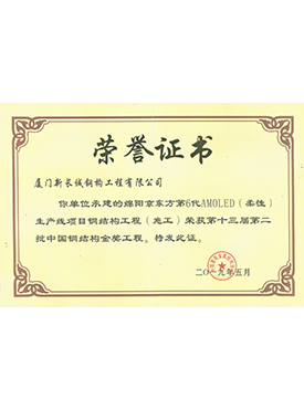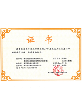 保灃2號廠房建設工程廈門市結構優質工程證書