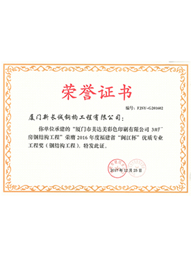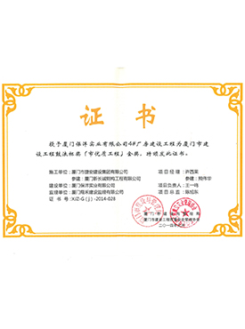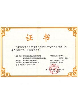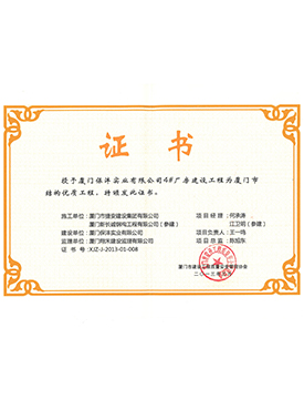 保灃4號廠房建設工程廈門市結構優質工程證書