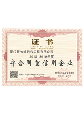 廈門市守合同重信用企業2018-2019年度證書
